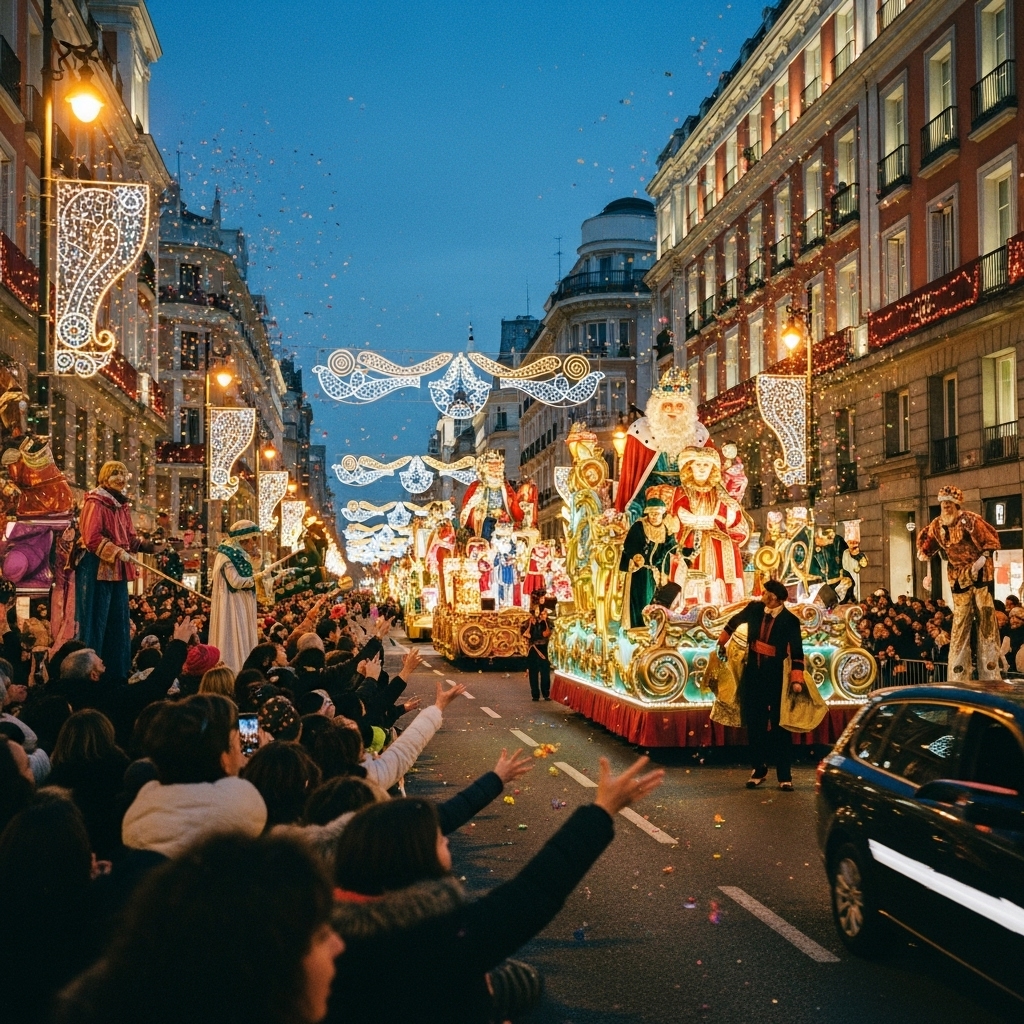 새해 카운트다운 이후 도시 전역에서 축제 무드. - Reyes Magos(1월 5일)